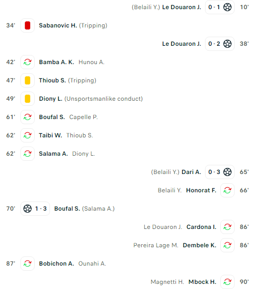 Goals: 10’0 – 1Le Douaron J.(Assist Belaili Y.) / 38’0 – 2Le Douaron J. / 65’0 – 3Dari A.(Assist Belaili Y.) / 70’1 – 3Boufal S.(Assist Salama A.) /