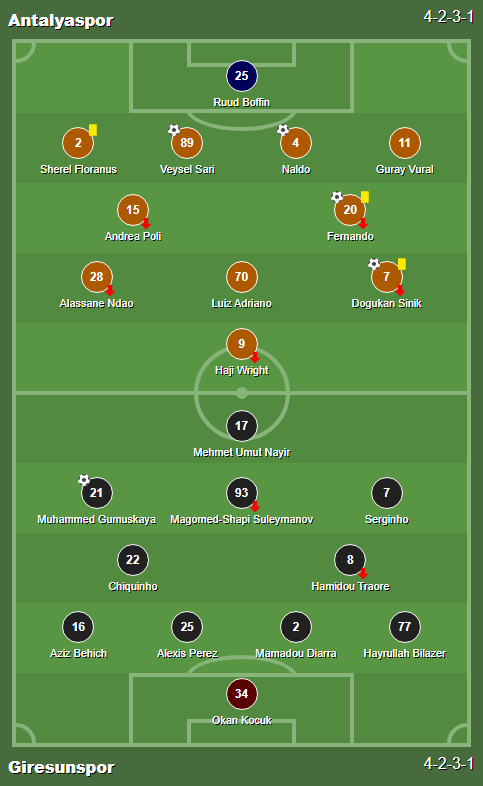 Cards: 10′ Dogukan Sinik / 78′ Fernando
