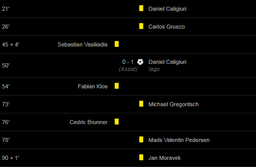 Cards: 21′ Daniel Caligiuri / 26′ Carlos Gruezo / 45 + 4′ Sebastian Vasiliadis / 54′ Fabian Klos / 73′ Michael Gregoritsch / 76′ Cedric Brunner / 78′ Mads Valentin Pedersen / 90 + 1′ Jan Moravek