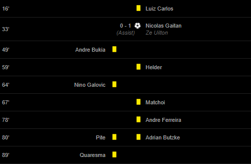 Cards: 16′ Luiz Carlos / 49′ Andre Bukia / 59′ Helder / 64′ Nino Galovic / 67′ Matchoi / 78′ Andre Ferreira / 80′ Pite Adrian Butzke / 89′ Quaresma