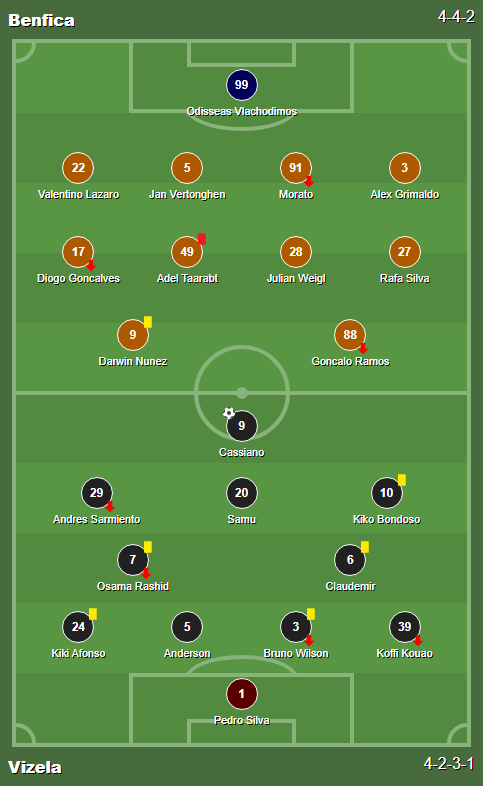 Cards: 7′ Adel Taarabt / 11′ Osama Rashid / 16′ Bruno Wilson / 45′ Kiki Afonso / 64′ Darwin Nunez / 78′ Kiko Bondoso / 86′ / 90 + 3′ Alex Mendez / 90 + 5′ Claudemir /