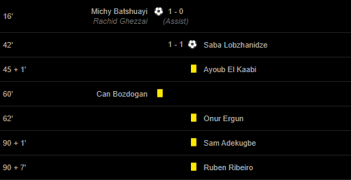 Goals: 16′ Michy Batshuayi (Rachid Ghezzal(Assist)) / 42′ Saba Lobzhanidze