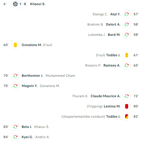Yellow Cards: 60 Gonalons M. / 61 Todibo J. /