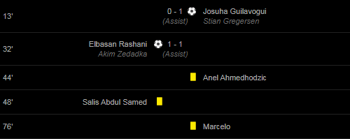 Cards: 44′ Anel Ahmedhodzic / 48′ Salis Abdul Samed / 76′ Marcelo