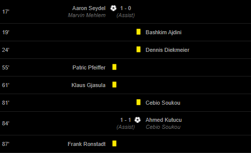 Goals: 17′ Aaron Seydel (Marvin Mehlem(Assist)) / 84′ ((Assist)Ahmed Kutucu) Cebio Soukou /