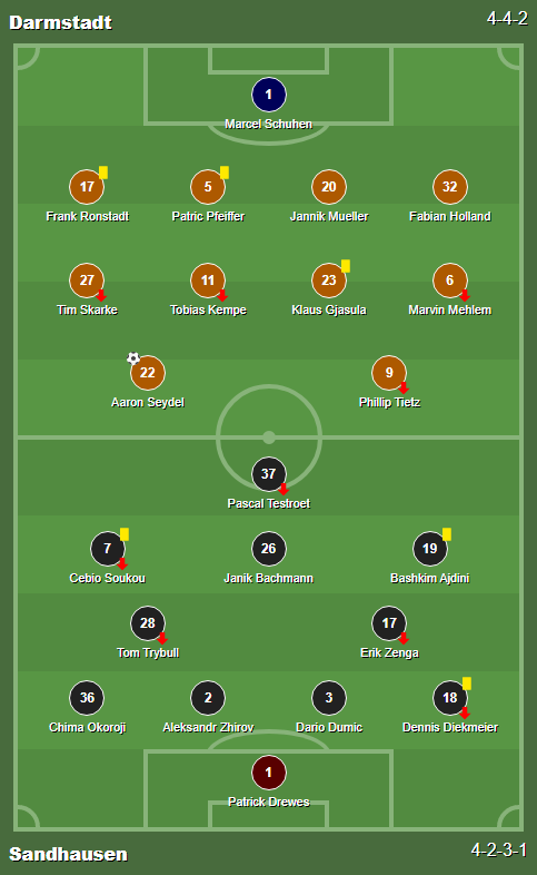 Cards: 19′ Bashkim Ajdini / 24′ Dennis Diekmeier / 55′ Patric Pfeiffer / 61′ Klaus Gjasula / 81′ Cebio Soukou / 87′ Frank Ronstadt /