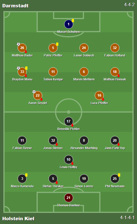 Cards: 29′ Braydon Manu / 59′ Marcel Schuhen / 72′ Patric Pfeiffer / 75′ Marco Komenda / 87′ Phil Neumann /