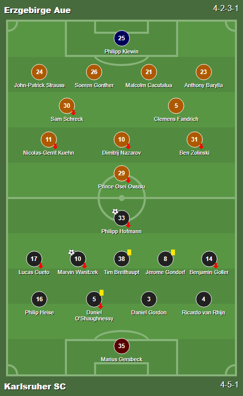 Cards: 28′ Tim Breithaupt / 45 + 3′ Jerome Gondorf / 51′ Daniel O’Shaughnessy / 82′ Jan Hochscheidt / 85′ Marc Lorenz