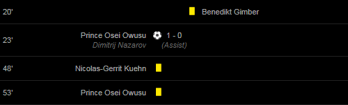 Cards: 20′ Benedikt Gimber / 48′ Nicolas-Gerrit Kuehn / 53′ Prince Osei Owusu
