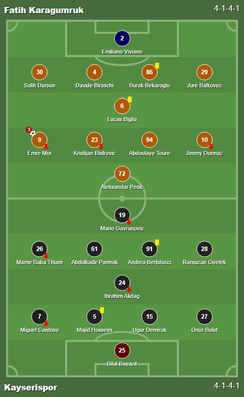 Cards: 47′ Lucas Biglia / 56′ Majid Hosseini / 69′ Burak Bekaroglu / 81′ Mustafa Pektemek / 88′ Andrea Bertolacci