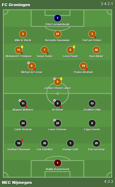 Cards: 18′ Joergen Strand Larsen Souffian Elkarouani / 28′ Rogier Meijer / 60′ Mohamed El Hankouri / 75′ Laros Duarte / 87′ Daleho Irandust