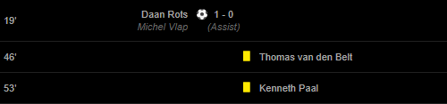 Goals: 19′ Daan Rots (Michel Vlap(Assist))