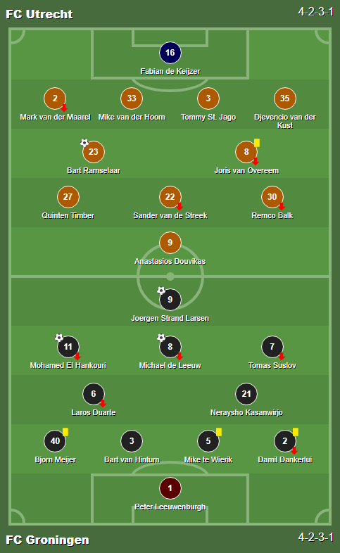 Cards: 41′ Bjorn Meijer / 41′ Mike te Wierik / 48′ Damil Dankerlui / 63′ Joris van Overeem