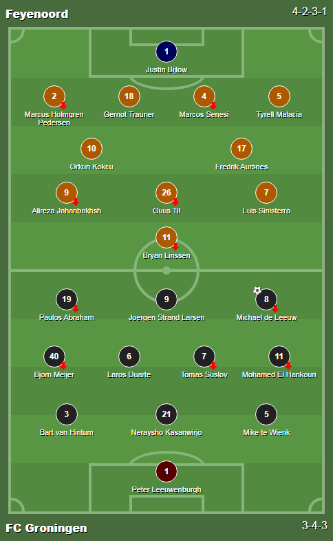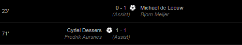 Goals: 23′ ((Assist)Michael de Leeuw) Bjorn Meijer / 71′ Cyriel Dessers (Fredrik Aursnes(Assist))
