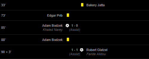 Goals: 85′ Adam Bodzek (Khaled Narey(Assist)) / 90 + 3′ ((Assist)Robert Glatzel) Faride Alidou /