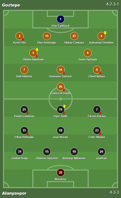 Cards: 36′ Oguz Aydin / 52′ Obinna Nwobodo / 90 + 6′ Kahraman Demirtas