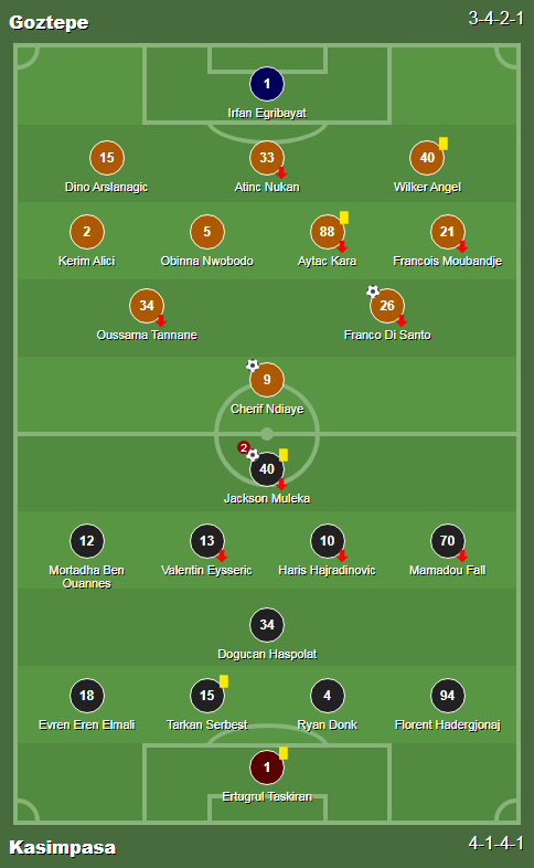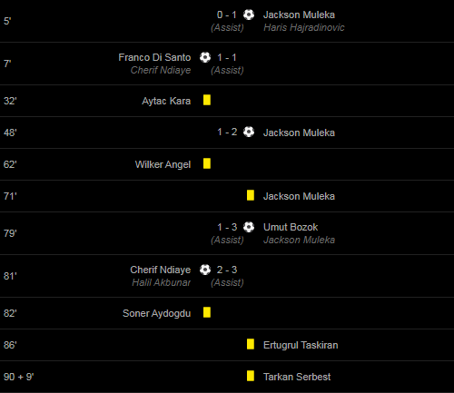Cards: 32′ Aytac Kara / 62′ Wilker Angel / 71′ Jackson Muleka / 82′ Soner Aydogdu / 86′ Ertugrul Taskiran / 90 + 9′ Tarkan Serbest /