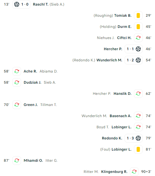 Yellow Cards: 29 Tomiak B. / 45 Durm E. / 81 Lobinger L. /