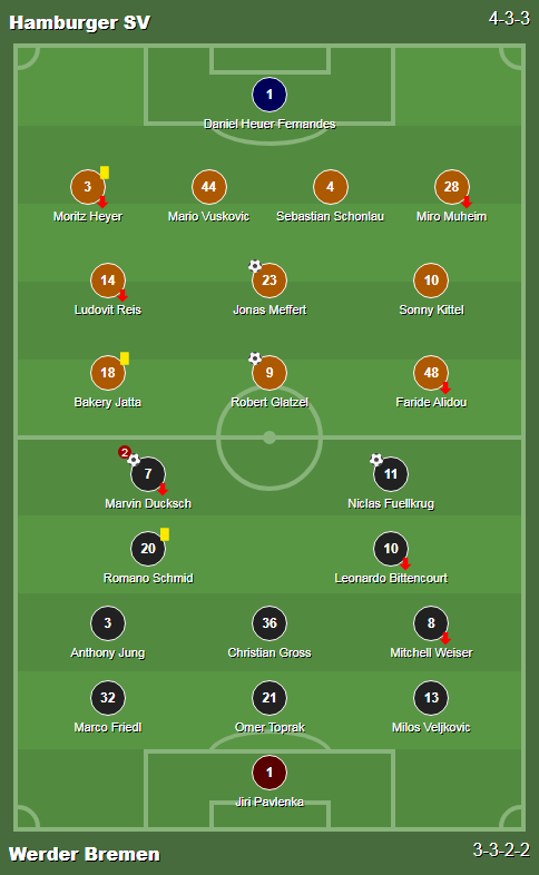 Cards: 45′ Romano Schmid / 51′ Bakery Jatta / 61′ Moritz Heyer