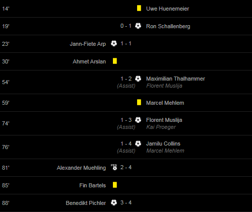 Cards: 14′ Uwe Huenemeier / 30′ Ahmet Arslan / 59′ Marcel Mehlem / 85′ Fin Bartels