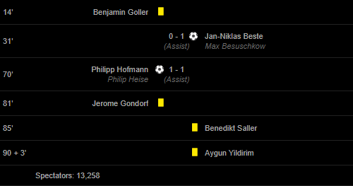 Goals: 31′ ((Assist)Jan-Niklas Beste) Max Besuschkow / 70′ Philipp Hofmann (Philip Heise(Assist)) /