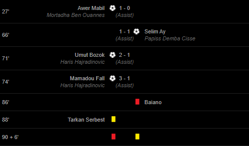 Goals: 27′ Awer Mabil (Mortadha Ben Ouannes(Assist)) / 66′ ((Assist)Selim Ay) Papiss Demba Cisse / 71′ Umut Bozok (Haris Hajradinovic(Assist)) / 74′ Mamadou Fall (Haris Hajradinovic(Assist))