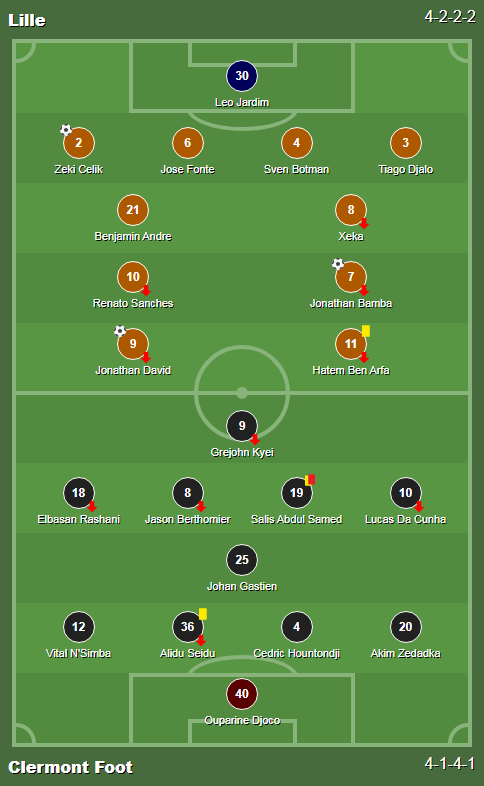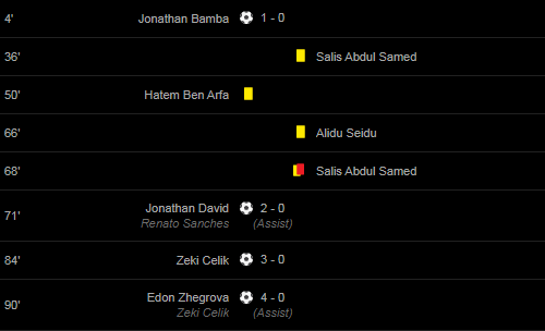 Goals: 4′ Jonathan Bamba / 71′ Jonathan David (Renato Sanches(Assist)) / 84′ Zeki Celik / 90′ Edon Zhegrova (Zeki Celik(Assist)) /