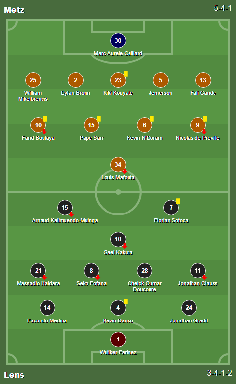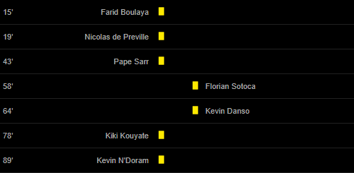 Cards: 15′ Farid Boulaya / 19′ Nicolas de Preville / 43′ Pape Sarr / 58′ Florian Sotoca / 64′ Kevin Danso / 78′ Kiki Kouyate / 89′ Kevin N’Doram