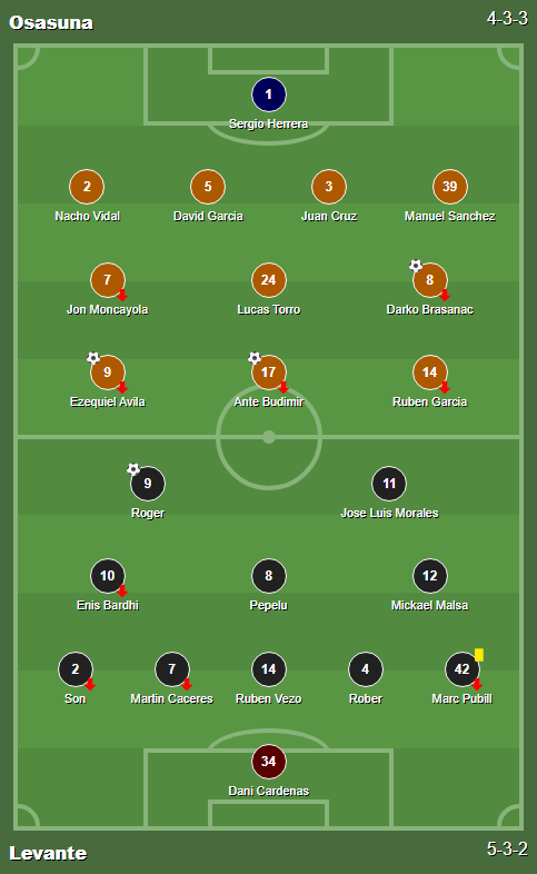 Goals: 44′ Ezequiel Avila (Ante Budimir(Assist)) / 57′ Ante Budimir (Ruben Garcia(Assist)) / 64′ Darko Brasanac / 76′ ((Assist)Roger) Roberto Soldado
