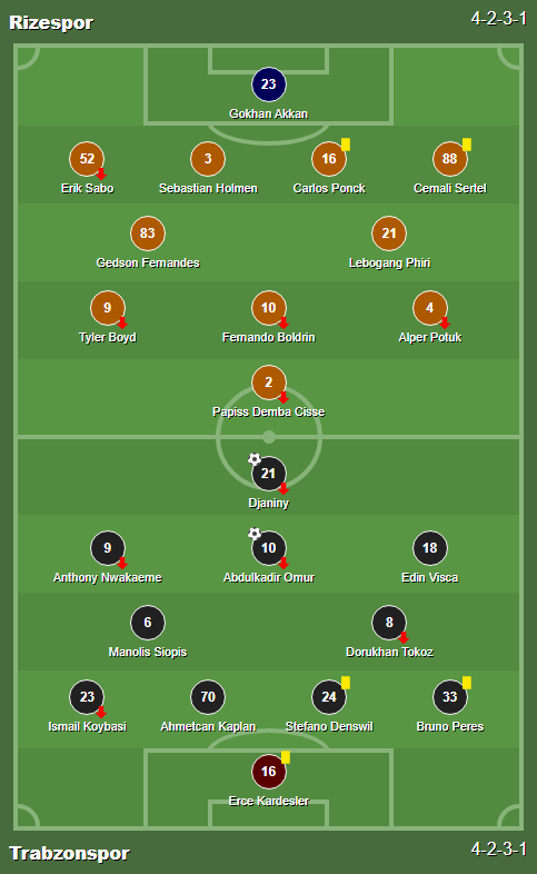 Cards: 39′ Carlos Ponck / 63′ Stefano Denswil / 75′ Bruno Peres / 89′ Cemali Sertel / 90 + 3′ Erce Kardesler