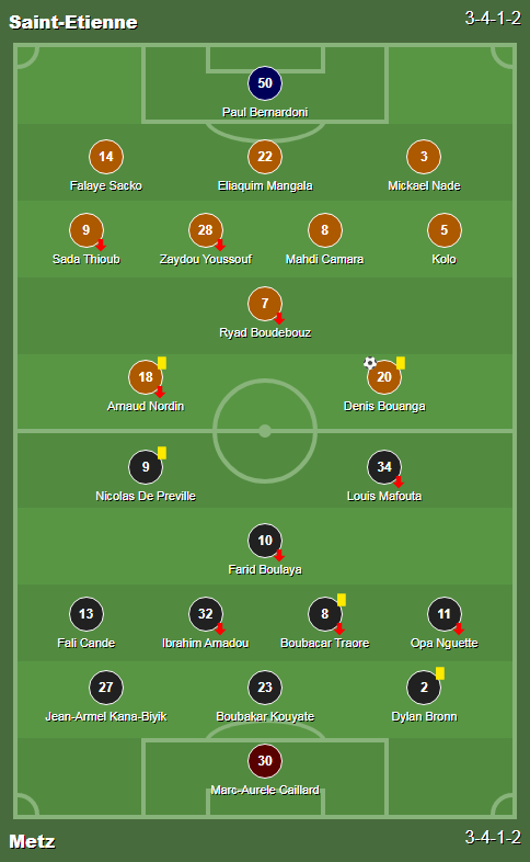 Cards: 20′ Denis Bouanga / 38′ Nicolas De Preville / 44′ Dylan Bronn / 58′ Thomas Delaine / 62′ Lucas Gourna-Douath / 64′ Boubacar Traore / 74′ Arnaud Nordin