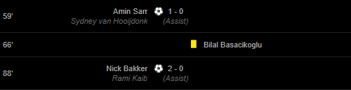 Goals: 59′ Amin Sarr (Sydney van Hooijdonk(Assist)) / 88′ Nick Bakker (Rami Kaib(Assist))