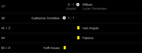 Goals: 17′ ((Assist)Willyan) Lucas Fernandes / 36′ Guilherme Schettine /