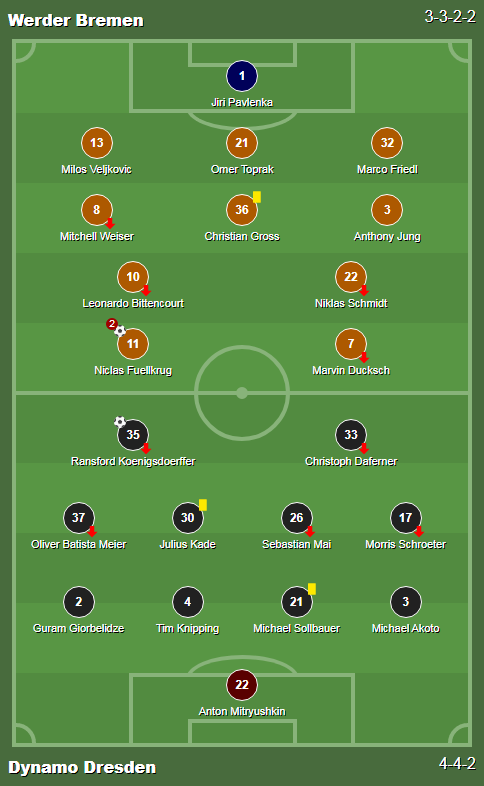 Goals: 2′ ((Assist)Ransford Koenigsdoerffer) Tim Knipping / 16′ Niclas Fuellkrug (Marvin Ducksch(Assist)) / 45′ Niclas Fuellkrug (Christian Gross(Assist)) /